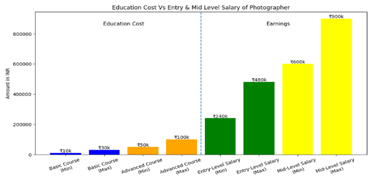 - Advanced Photography Courses: ₹50,000 to ₹1 lakh for professional programs or degree courses in photography, depending on the institution and specialization.